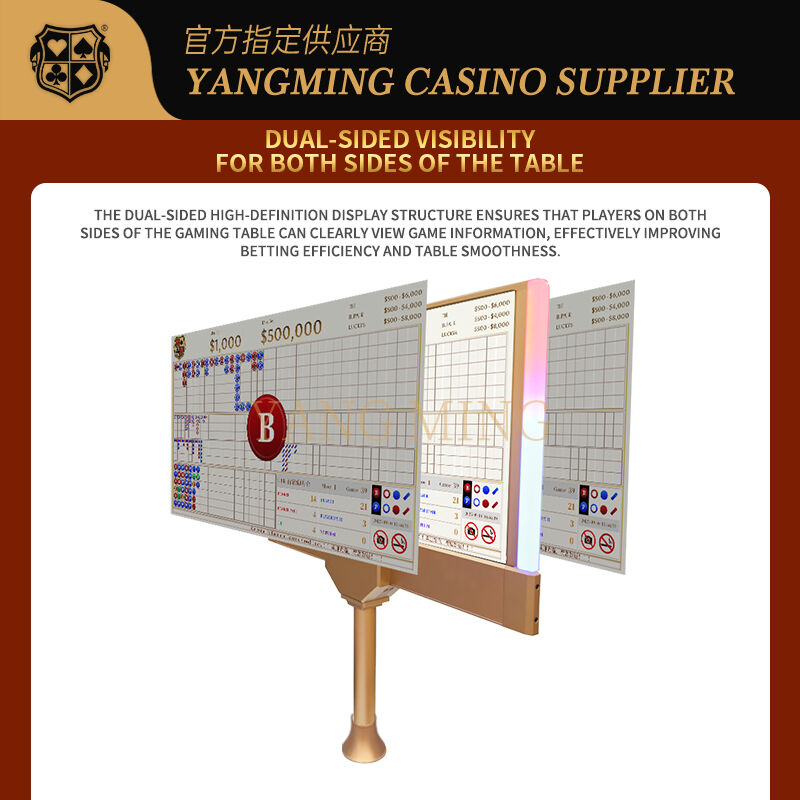 カジノのディスプレイLED照明と スリムで現代的なデザインで,両側から明確な可視性を確保します.テーブル. カジノの継続的な動作のために構築,それは安定したパフォーマンス,鮮明なグラフィック,および広い視角を提供します. バカラや他のテーブルゲームのために理想的,それはカスタマイズ可能なコンテンツをサポートします,多言語表示, ロゴのブランディングは,ゲーム管理の効率化とカジノ全体のプレゼンテーションを向上させる.