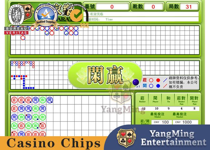 | 機能パラメータ | 1. マカオで一般的に使用されるメインロード、珠子ロード、小路、大眼、ネギロードを表示できます(標準のマカオルール描画方法を使用)。 2. バンク、イードル、タイ、ペアの統計表示機能付き 3. 上記のすべての機能は、自動的に変更および更新できます。 4. 特に次のラウンドの方向性を尋ねる機能を提供します。 5. 各ロードがいっぱいになると、自動的に後方に移動できます。 6. すべての操作手順には詳細なヒントがあります。 |